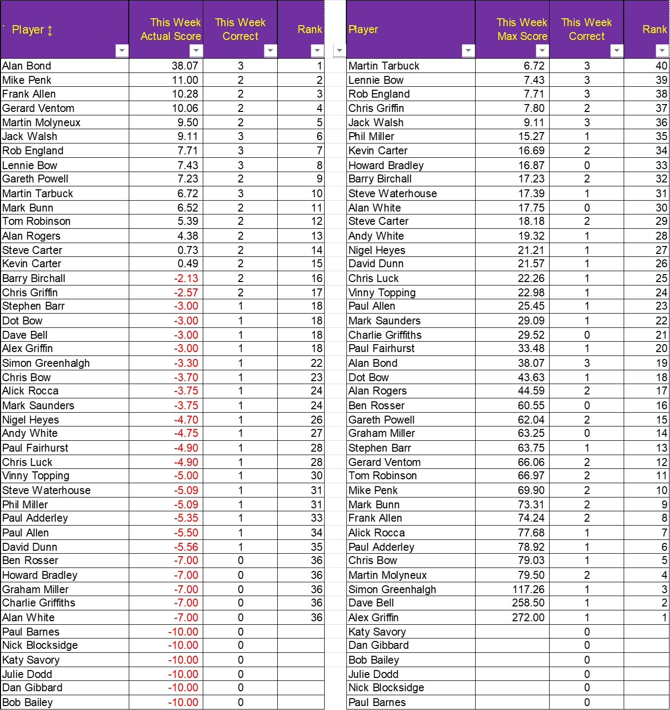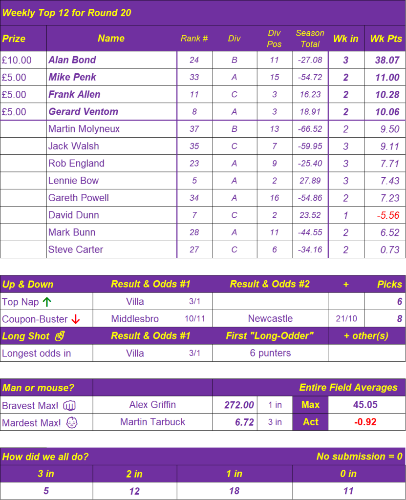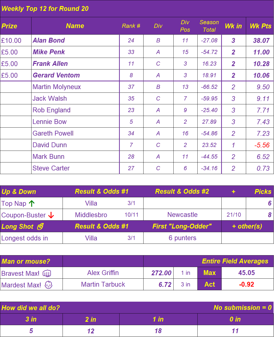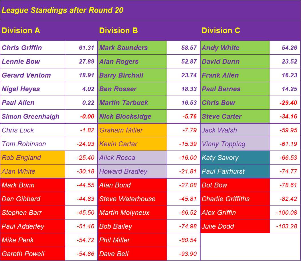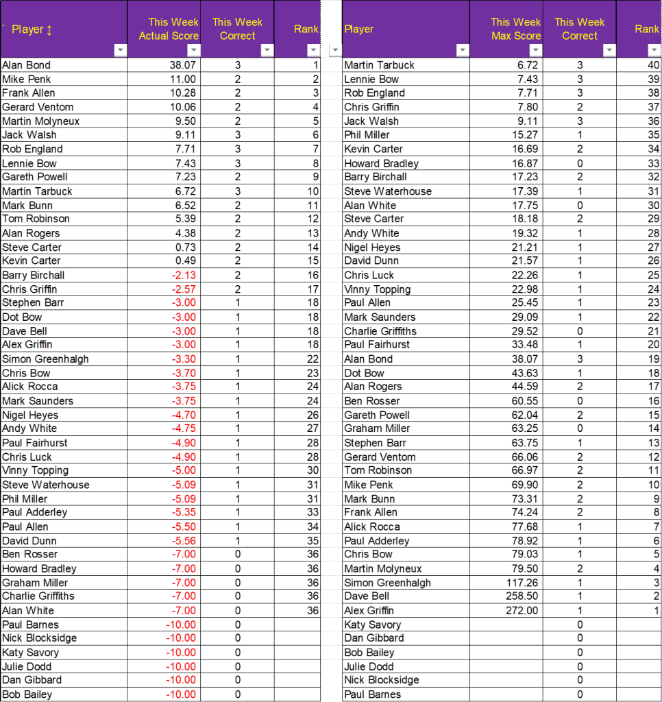 Prediction League News Updated at 08:00 on Monday, 29th December The latest 3in! PL46 Prediction League spreadsheet, after Round 20 Prediction League Divisional Season 46 Round 20Download